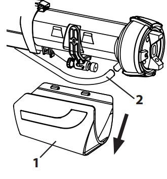 - Sprühlanze aus Halterung nehmen und Abdeckung (1) vom Sprühkopf entfernen.