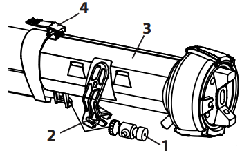 - Überwurfmutter (1) abschrauben, Luftkappe (2) und Düse (3) abnehmen. Luftkappe, Düsendichtung (4) und Düse mit Pinsel und Lösemittel bzw. Wasser reinigen.