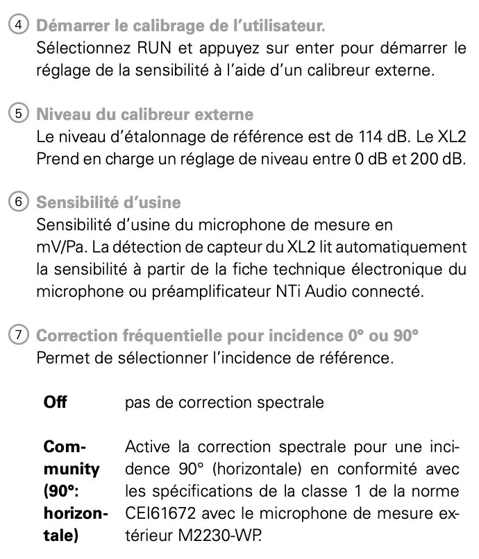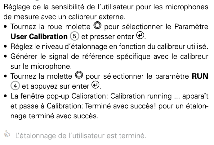 Calibrage avec « Class 2 Sound Level Calibrator » (niveau de référence 114 dB) :