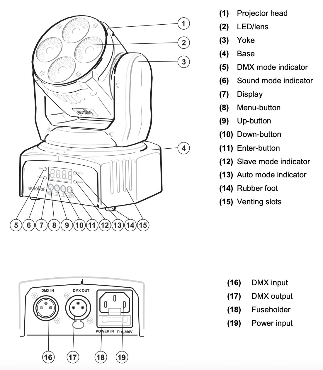 Grâce au microphone intégré, le programme de spectacle intégré peut être reproduit de manière optimale avec l’appareil au rythme de la musique (battement des basses).