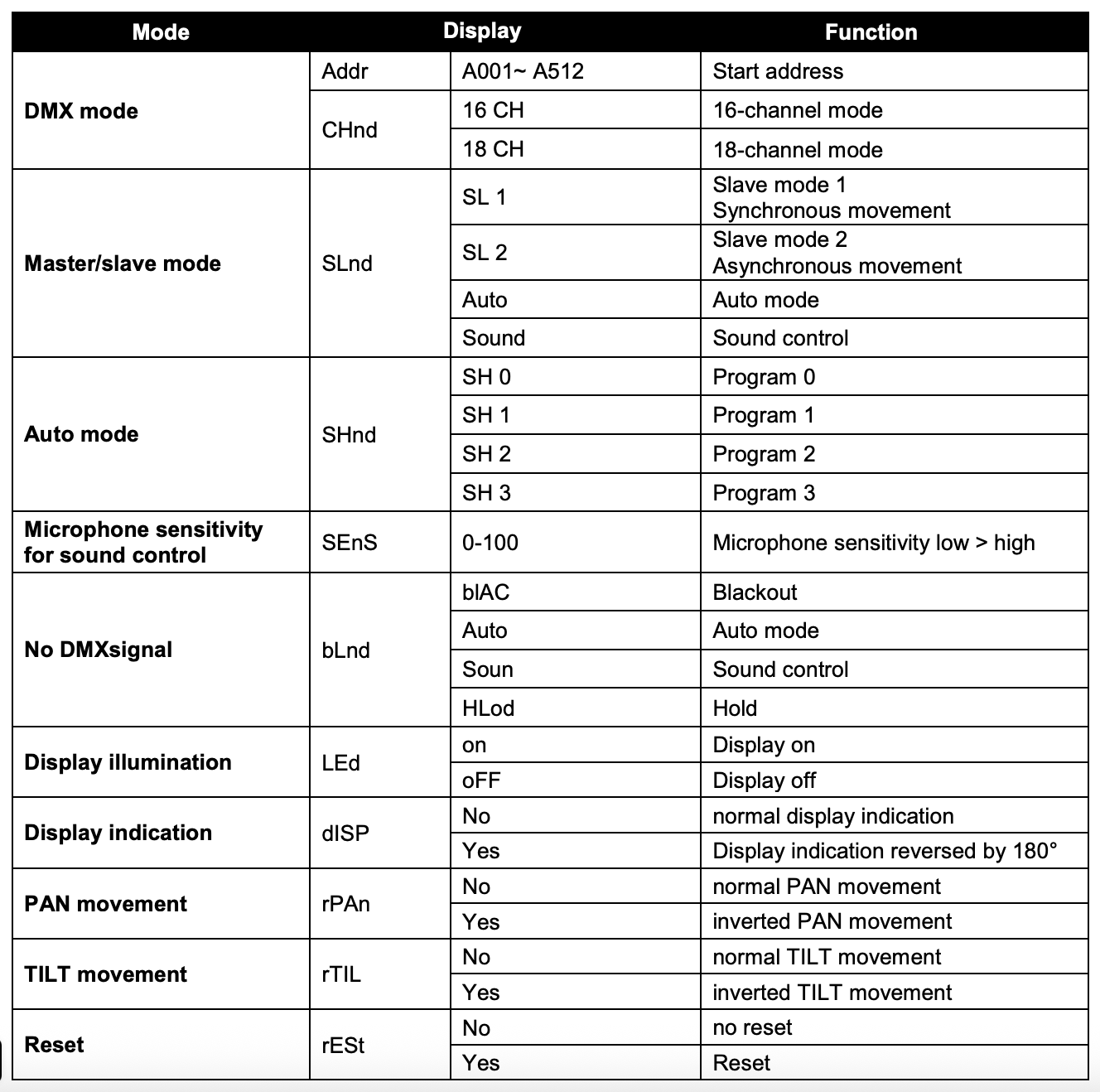 3. Naviguez dans les différents programmes de spectacle SH 0-3 à l’aide des touches haut et bas.