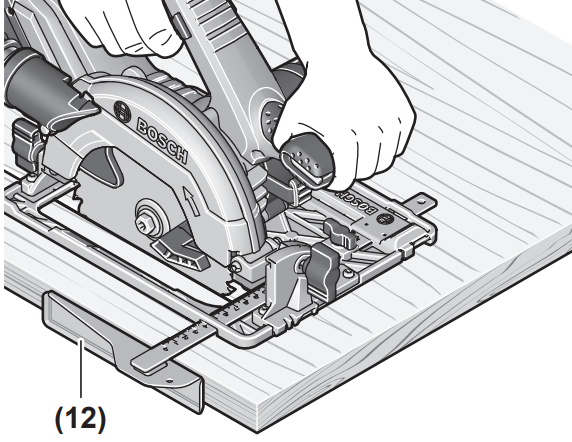 3. Für eine grössere Schnitttiefe drücken Sie die Säge zur Grundplatte (6) hin