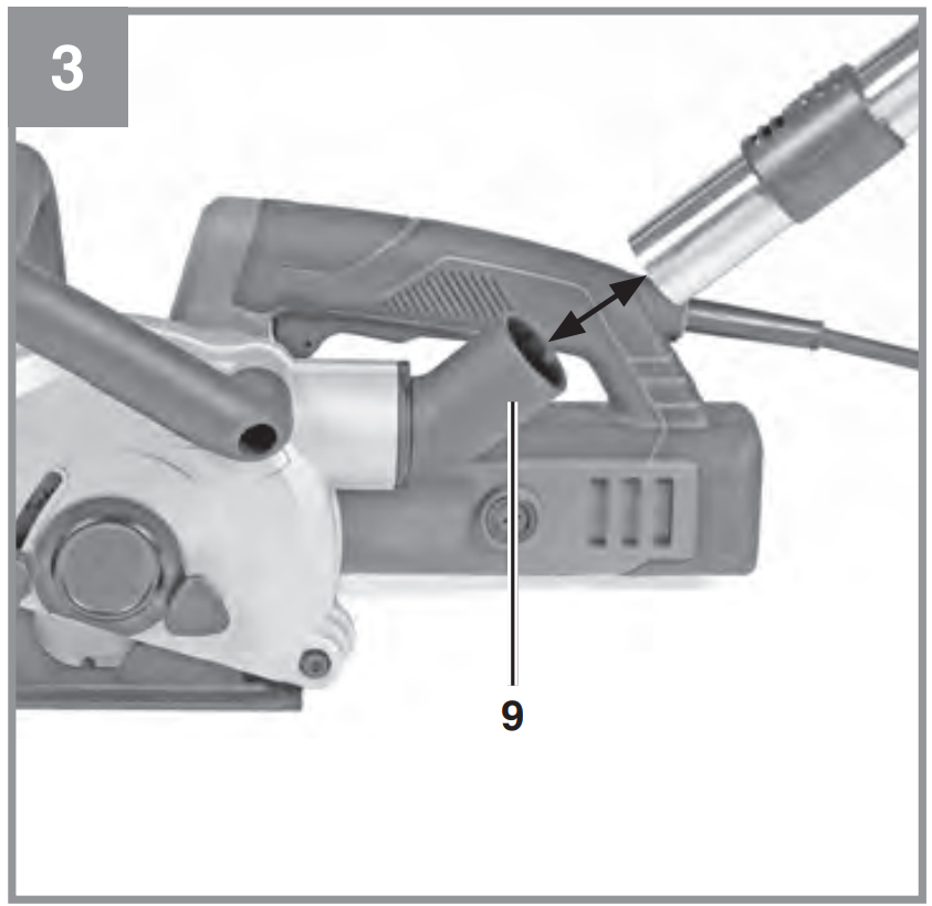 - Schalte nun das Gerät ein und tauche nun langsam in das Mauerwerk ein, bis der Anschlag (7) aufliegt.